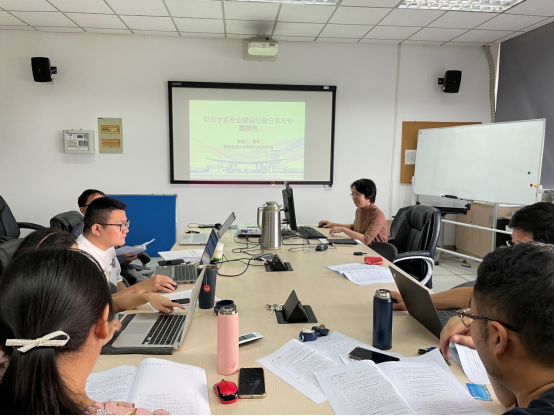 财政学专业建设进行分析,并围绕专业发展现状和就业趋势等问题作深入探讨。在谈及财政学专业教学方法时,他结合自身教学经验,提出要采用针对性、专业性教学方法,结合新兴教学手段和工具培养学生思维,提升学生质量。同时,唐祥来教授还就下一步如何推进专业建设和改革的主要思路和措施建议与教育部的指导思想相结合(课程思政、 过程管理、 打造金课),突出可持续、高质量发展进行了详细说明。
