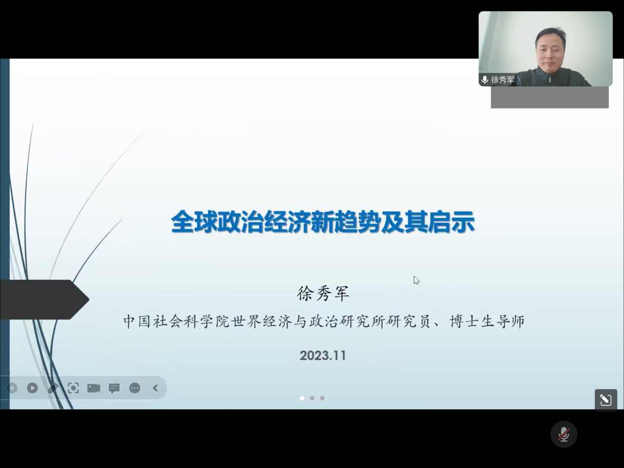 徐秀军教授为袋鼠直播nba 师生做关于“全球政治经济新趋势及其启示”的精彩讲座