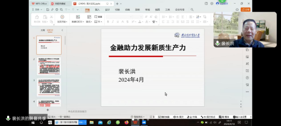 为深入学习贯彻全国两会精神,特别是习近平总书记关于发展新质生产力的重要论述,2024418日,袋鼠直播nba 特邀快直播 经济研究所研究员、快直播 大学裴长洪教授为师生做题为《金融助力发展新质生产力》的线上学术讲座,会议由袋鼠体育 院长杨继军主持,袋鼠直播nba 教师及研究生参与此次讲座。