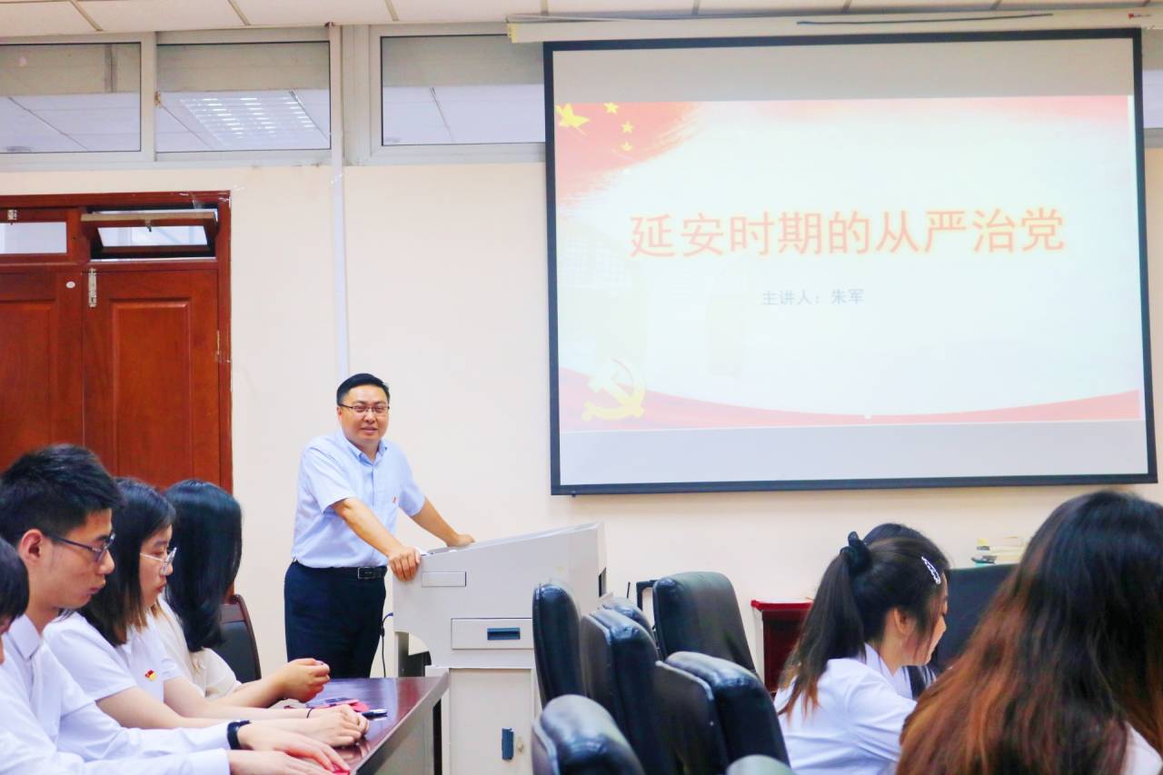 院长朱军教授在德经楼408会议室为支部党员作了题为《延安时期的从严治党》的专题党课辅导,本科生第二党支部全体党员参加本次党课学习,党课由本科生第二党支部书记翟文静主持。