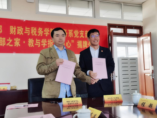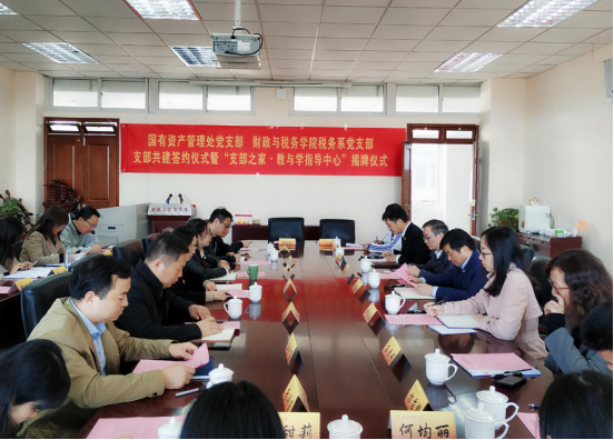 税务系党支部在德经楼408会议室举办支部共建签约仪式暨“支部之家·教与学指导中心”揭牌仪式。校党委常委、总会计师黄建元、校机关党委书记郝园园出席仪式,国有资产管理处处长丁书俊、副处长庄素娟、处长助理王建立,袋鼠直播nba