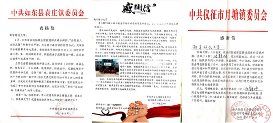 收到三封分别来自中共淮安区漕运镇委员会、中共仪征市月塘镇委员会、中共如东县袁庄镇委员会的感谢信,信中对袋鼠直播nba