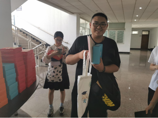 精心准备的便签本和印有“财税青年,当以身作则,成中流之砥柱”的书签,他说:“生活就像一盒巧克力,我们永远不知道将得到什么。而这份新颖的盲盒让我感到了惊喜!书签上的这句寄语让我对这个专业有了新的认识。”值得一提的是,盲盒中的信件是使用可再生纸张进行书写,部分迎新用的道具也是来源于过去几年的库存,循环利用,在给新生们传递温暖的同时,响应节约资源,保护环境的号召。