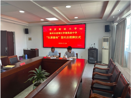 柳勇校长介绍学校的办学历程、办学特色、在校学生规模、以及近年来取得的高考成绩并南京财经大学带来的生涯规划专题讲座表示感谢,期待双方在学科竞赛人才培养、教学科研等方面开启深度合作交流。王翔副书记对罗塘高级中学的柳勇校长表示感谢,并详细介绍了我校的办学历史、学科专业优势、人才培养机制以及学校的特色专业情况他表示,今后将以优质生源基地建设为抓手,加强学科竞赛、科普讲座、生涯规划指导以及课题申报指导等方面的联系与交流,为培养更多高素质、复合型人才奠定坚实基础。交流结束后,双方代表签署了《南京财经大学优质生源基地合作协议》,举行优质生源基地授牌仪式。