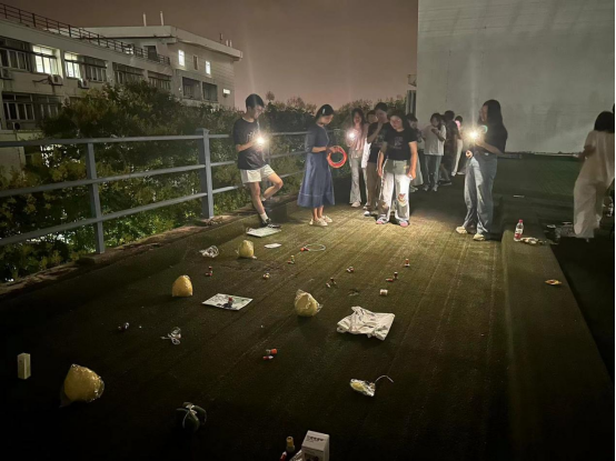 “我赢啦!”“就差一点点!”套圈场地热闹非凡,欢闹声此起彼伏。有的圈圈在空中划出优美的弧线,稳稳落在摆放好的奖品上,引来阵阵欢呼;有的则偏离了轨道,引得大家笑声连连。同学们吃着自己“套”来的各馅月饼,品味着成功的喜悦。