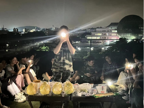 “暮云收尽溢清寒,银汉无声转玉盘”。同学们纷纷在草坪上挑选最佳角度与月亮合影,以此来表达对传统文化的尊重和对节日的庆祝。这些照片不仅捕捉了月亮的皎洁,也营造出美好和睦的中秋节氛围,成为了中秋节一道独特的风景线。