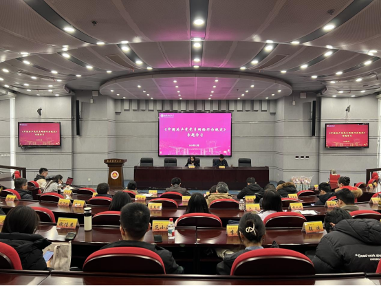 组织全体党员师生于会上开展《中国共产党党员网络行为规定》专题学习并集中观看党的创新理论专题学习片《向新攀登》。
