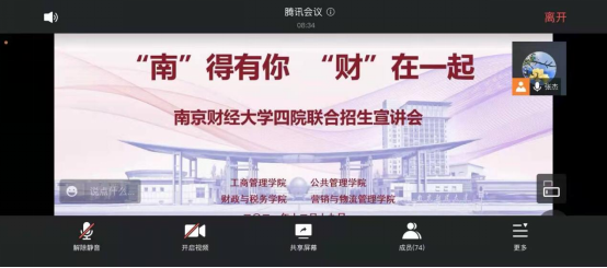 联合举办的“南”得有你,“财”在一起线上招生宣讲会通过腾讯会议平台向公众开放直播。相关生源地高中学生及家长,部分报名参加寒假招生宣传母校行的志愿者参加了宣讲会,宣讲会由营销与物流管理袋鼠体育