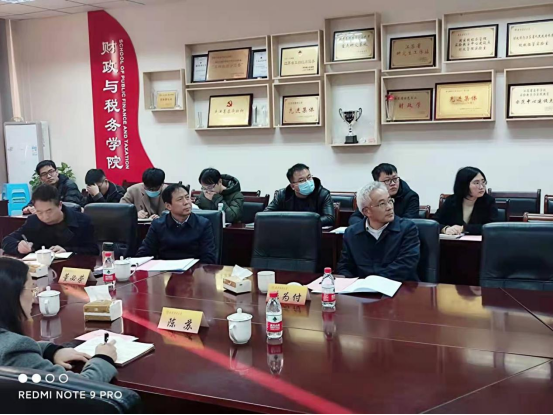 一流课程、重点教材及实验室平台做了简介,对税收学和财政学一流课程及课程思政建设中存在的问题向与会参加做了汇报。
