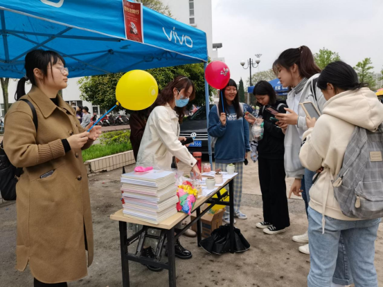 协办的“税与法同行”税收宣传月主题活动在仙林校区中苑食堂和西苑食堂前广场相继举行。现场人声鼎沸,热闹非凡。活动现场,蓝色帐篷前人头攒动,络绎不绝的人群将帐篷四周的区域挤得水泄不通。围聚在帐篷周围的同学们一个个低着头紧皱眉头,作苦思冥想状。原来这群“低头族”正在手机上参加税法答题活动。本次活动采用线上竞答模式,同学们现场扫码进行答题,答题结束后可根据自己的分数获得相应的奖品。“同学,想试一试我们的答题活动吗?”“想对税法多一些了解吗?答题有礼品相赠哦。”现场工作人员热情地向过往的同学发出邀请,越来越多的人驻足参与到活动中。问答的网站上有如“属于税法体系主体与核心的是什么法律?”“税法中属于对流转课税的有哪些税种?”之类的专业性问题,也有在实际生活经常会遇到的具体问题。这些问题让同学们对税法有了更深入的认识,也拓展了同学们的知识面,使同学们更深入地体会到不同学科之间的相互融合。“平时我们在课本上学习到的基本都是本专业的学科知识,很少有机会接触到其他专业领域。我认为这次活动是一个很好的机会,能拓宽自己知识面,了解其他专业知识。”活动参与者杨敏同学如此表示。