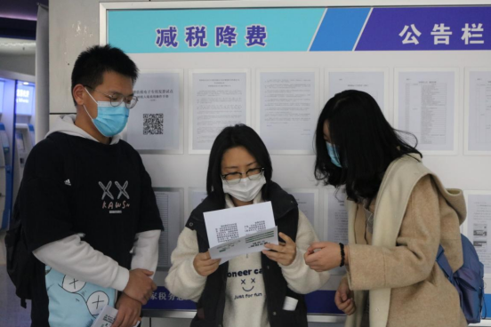 “小雨点”税收宣传志愿服务队来到全市各区办税大厅和附近街道,通过实地宣传的方式,大力加强税法宣传,增强纳税人依法诚信纳税意识。志愿者们拿着精心制作的“宣传手册”向前往办理业务的纳税人们热情地介绍着最新增值税改革的相关知识,通过发放个人所得税的传单和问卷调查的方式积极地宣传纳税知识:“您好,个人所得税纳税知识了解一下哦,做一个合格的纳税人吧!”纳税人们也停下匆匆的脚步,耐心地聆听志愿者们介绍纳税小知识。