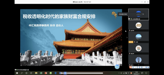 邀请,中汇江苏税务师事务所董事长、南京财经大学产业教授孙洋通过腾讯会议线上就“税收透明化时代的家族财富合规安排”,为我院师生做了一场专题讲座。