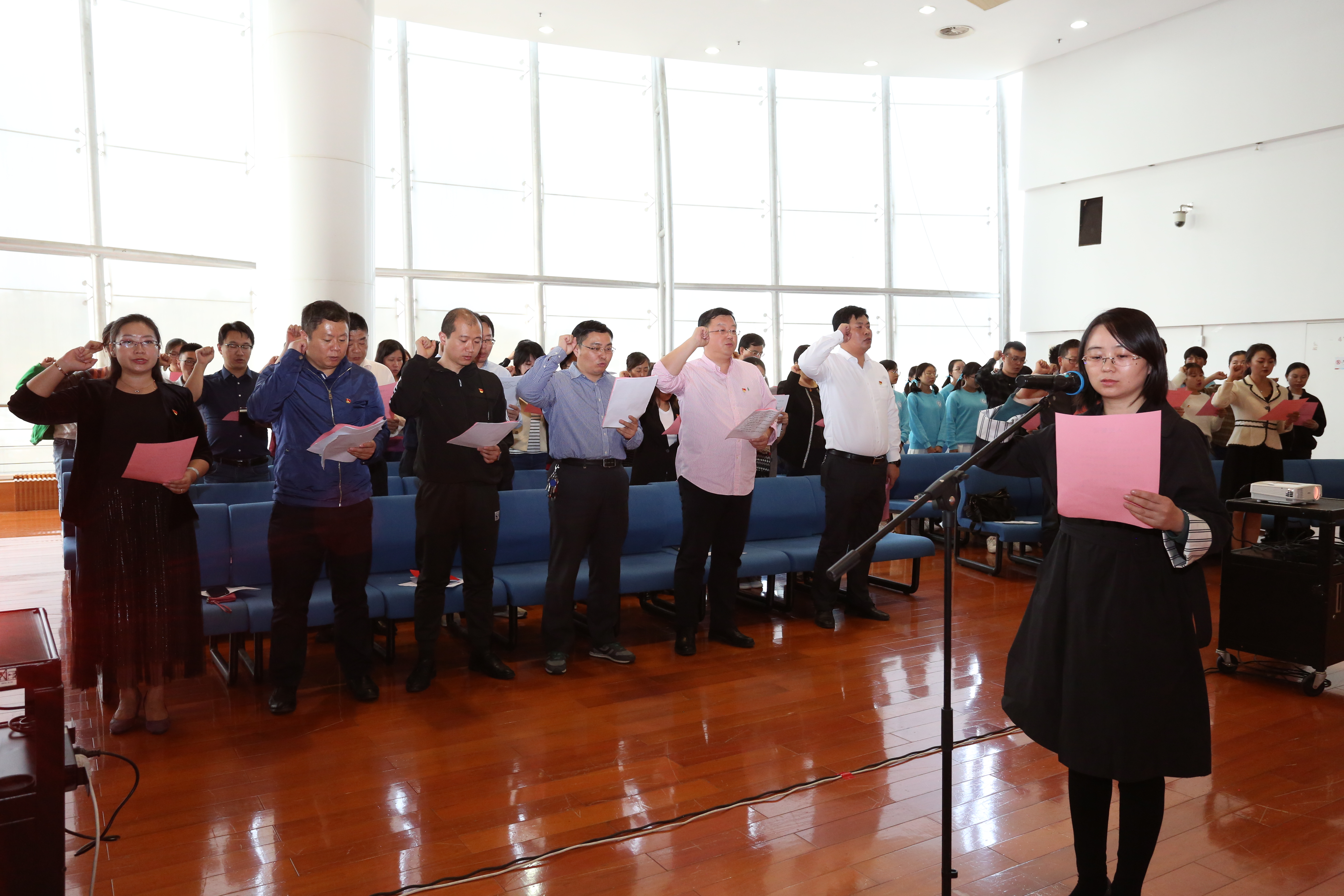 党委书记陈苏同志带领现场党员师生重温入党誓词,重温初心,一道向党旗庄严宣誓,对党忠诚,为共产主义奋斗终身。