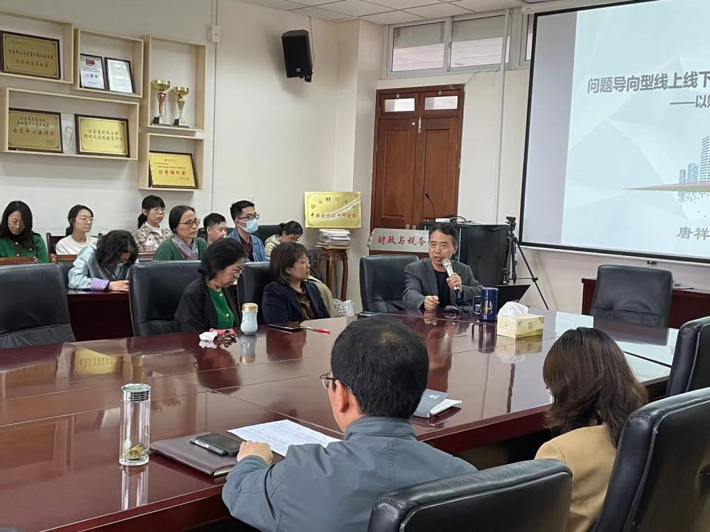 邀请了校级教学名师唐祥来教授为全院专职教师做题为“问题导向型线上线下混合教学改革实践——以财政学为例”的教学经验分享。参与此次教研活动有袋鼠体育