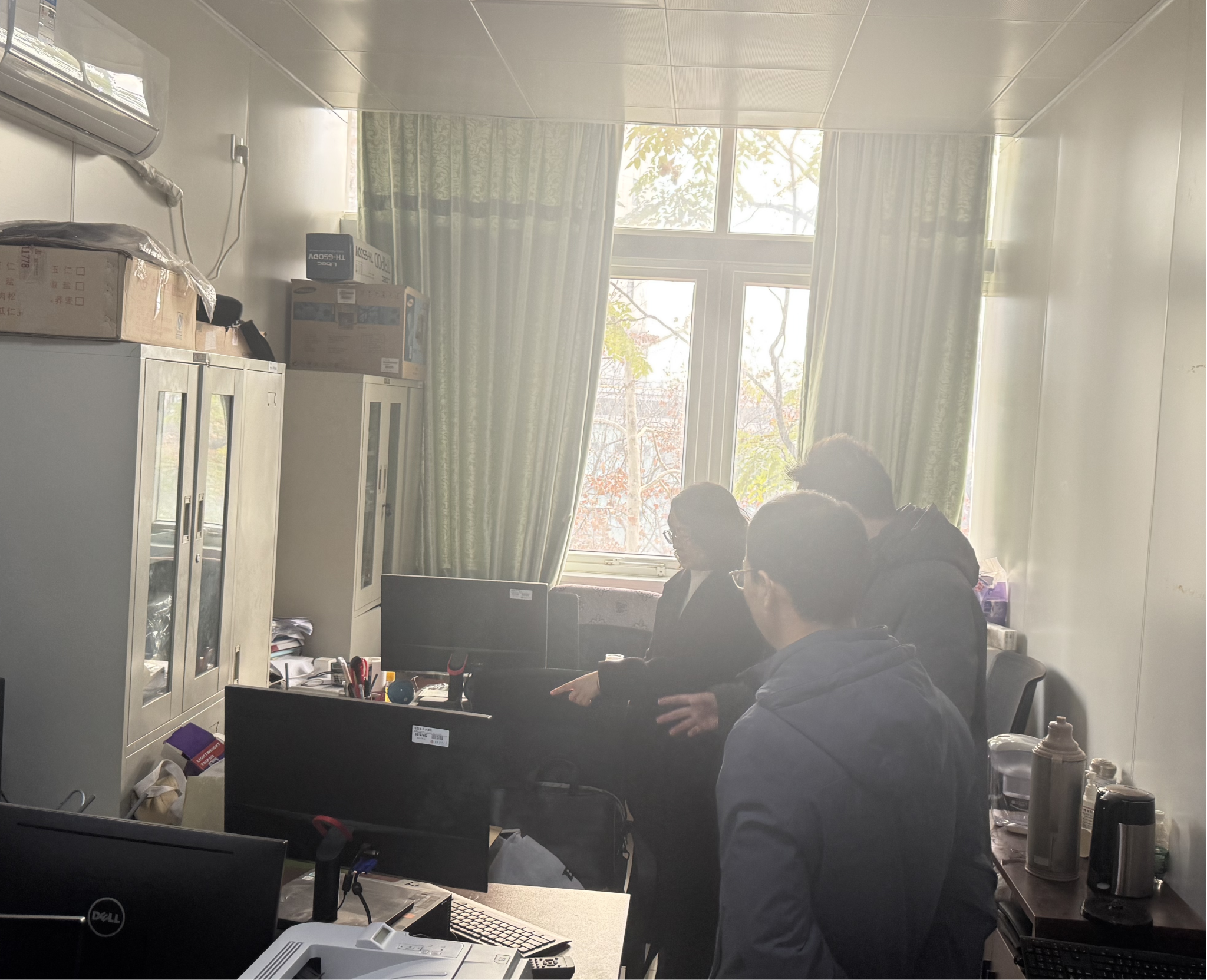 在德经楼4楼办公区,大家逐一检查消防设施设备的运行状况。同时,对办公区域的设备用电安全也进行了排查,检查电线是否存在老化、破损现象,插座是否牢固,避免因电气故障引发火灾隐患。