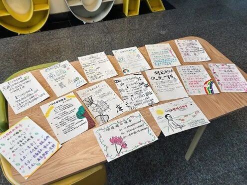 分享会的第一站,在教室内,是一场名为“廉洁账本共创会”的集体创作。同学们围坐在一起,在负责人的引导下,拿起画笔、翻开纸页,以“廉洁”为底色,自由挥洒创意,以笔传情、以画喻廉。创作结束后,大家用活页环将数十幅风格各异的设计内页精心装订,一本凝聚集体智慧的“清廉合集”在大家的目光下徐徐展开,成为这个秋夜最珍贵的纪念。这本由同学们共创的账本,不仅是事务公开的生动载体,更是同窗之间协作与共鸣的美好见证。这场温馨的共创,如同一道开场序曲,徐徐拉开了整个分享会夜晚的帷幕。