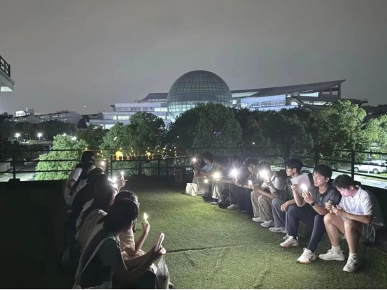 移步至德经楼二楼的露台,分享会的氛围进入了高潮——猜谜。 “明天日全食”“嫦娥下凡”……主持人一个个抛出谜语,同学们蹙眉思索谜题答案,不时相互探讨。主持人妙语连珠,一道道趣味谜题如繁星洒落。台下同学们或凝神沉思,或交耳切磋,欢声不断,智慧流转。谜语方歇,歌曲接踵——随着熟悉的旋律哼唱,同学们争相抢答歌曲名称。每当有人猜中谜底、答出歌名,现场便响起阵阵掌声与欢呼声。柔和的月光流转,照亮张张笑靥;趣味的谜题迭出,激荡思维火花;动人的旋律回荡,引发青春共鸣——露台仿佛成了青春与传统文化交融的舞台,每个人都成了这场分享会秋夜中最动人的风景。
