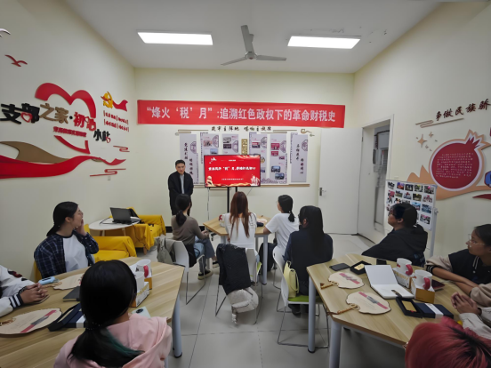 10月16日下午,我院在一站式学生社区“初心小站”成功举办《“烽火'税’月”:追溯红色政权下的革命财税史》宣讲会。本次活动旨在通过回顾中国共产党领导下的财税发展历程,引导学生深刻理解财税事业在中国革命、建设与改革中的重要作用,传承红色基因,坚定理想信念。