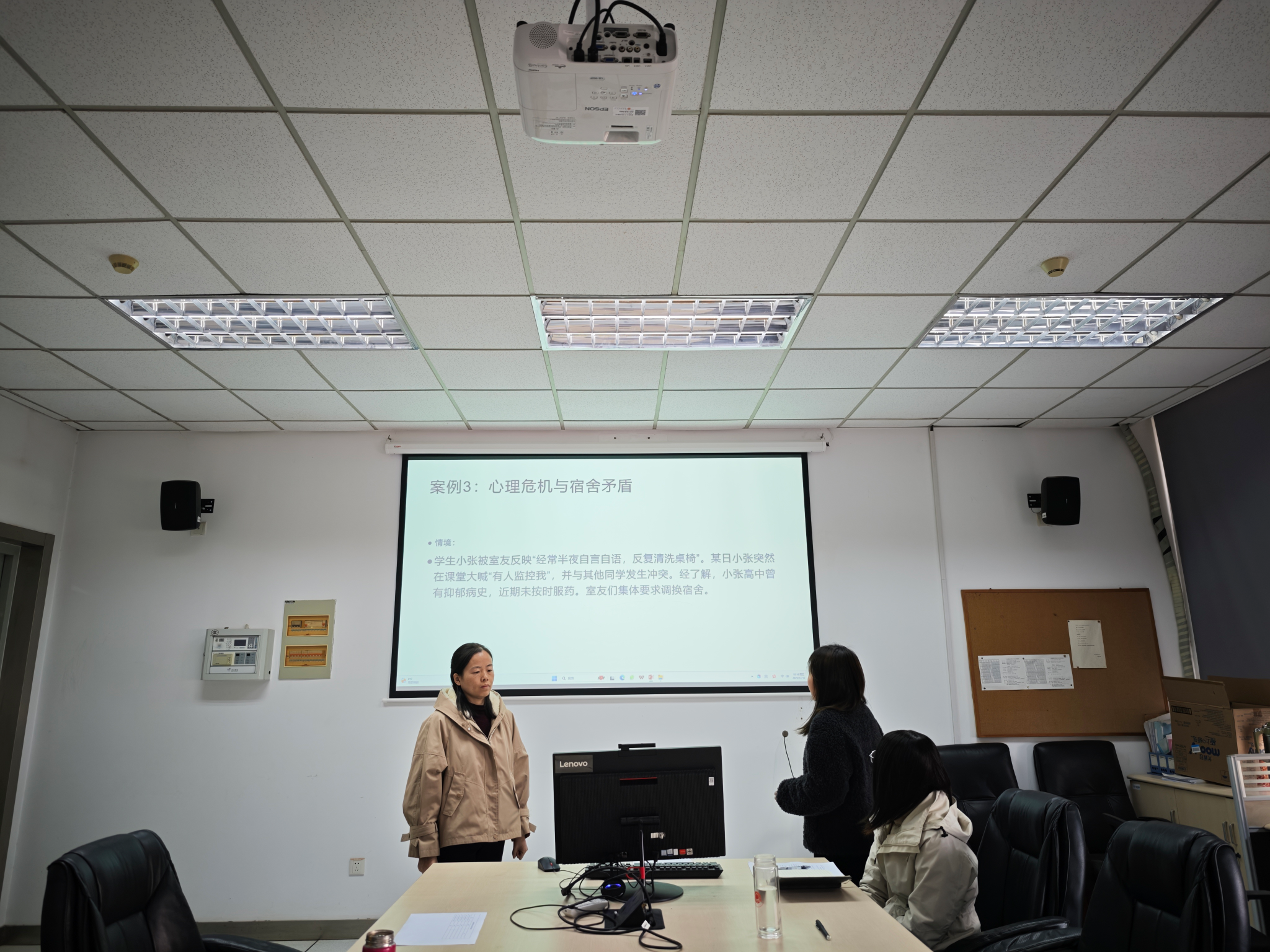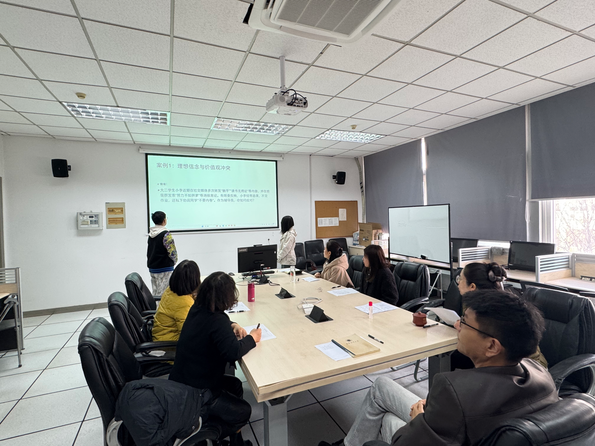 比赛中,辅导员随机抽取案例,现场进行问题分析、处置思路阐述与谈心谈话情景模拟。在“网络行为失范”类案例研讨中,选手们围绕“技术能力与伦理边界”展开深入辨析;面对“心理危机与宿舍矛盾”复合型案例,辅导员分享了“先情绪疏导、再分步调解、必要时启动应急机制”的务实方法,展现了扎实的业务功底与应变能力;在涉及多民族学生交往的模拟情境中,参赛者展示了如何以铸牢中华民族共同体意识为主线,有效开展思想引导、促进团结融合。比赛过程充分展现了辅导员扎实的业务功底与应变能力。